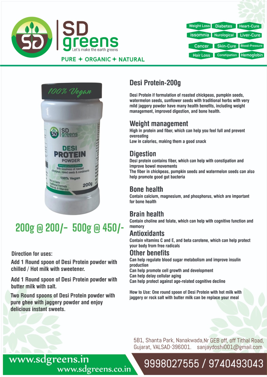 How to Use: One round spoon of Desi Protein with hot milk with jaggery or rock salt with butter milk can be replace your meal